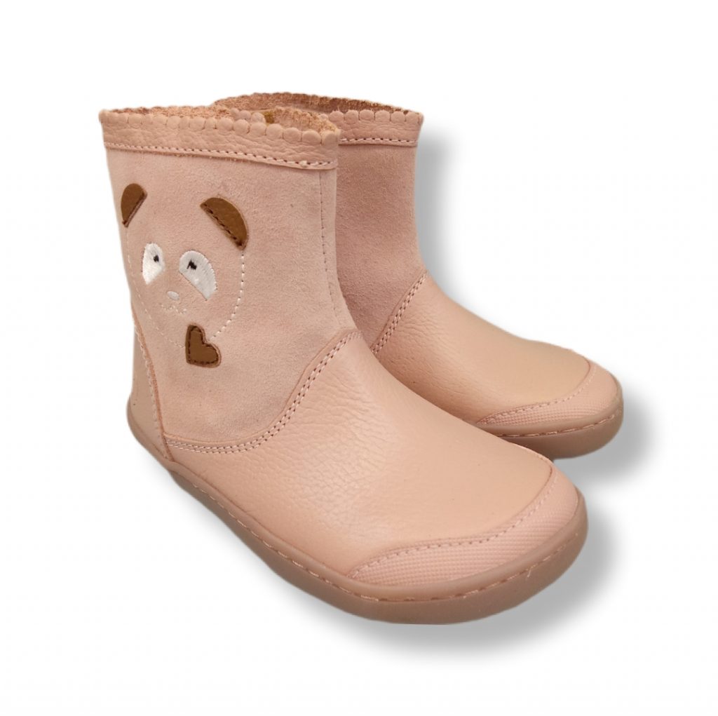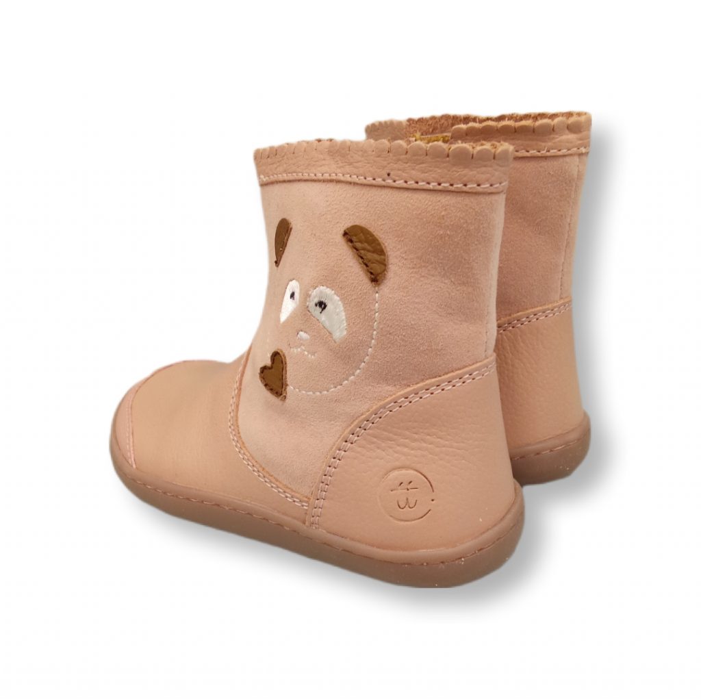 Botas respetuosas con un osito en el lateral exterior en color rosa de la marca Chetto. ¡Muy flexibles! Pensadas para el correcto crecimiento de los pies durante su desarrollo. Puntera reforzada para una mayor durabilidad. Forro termoaislante para tener los pies calentitos durante los días más fríos.