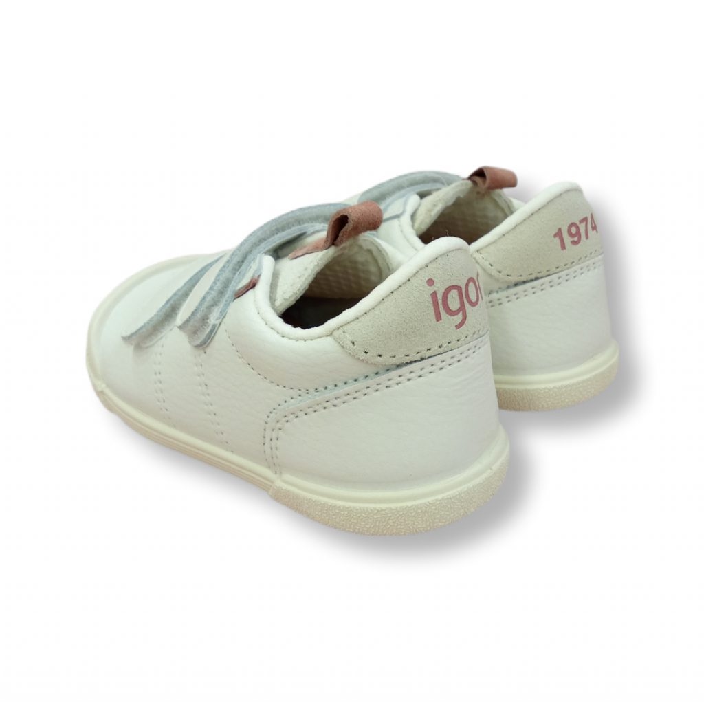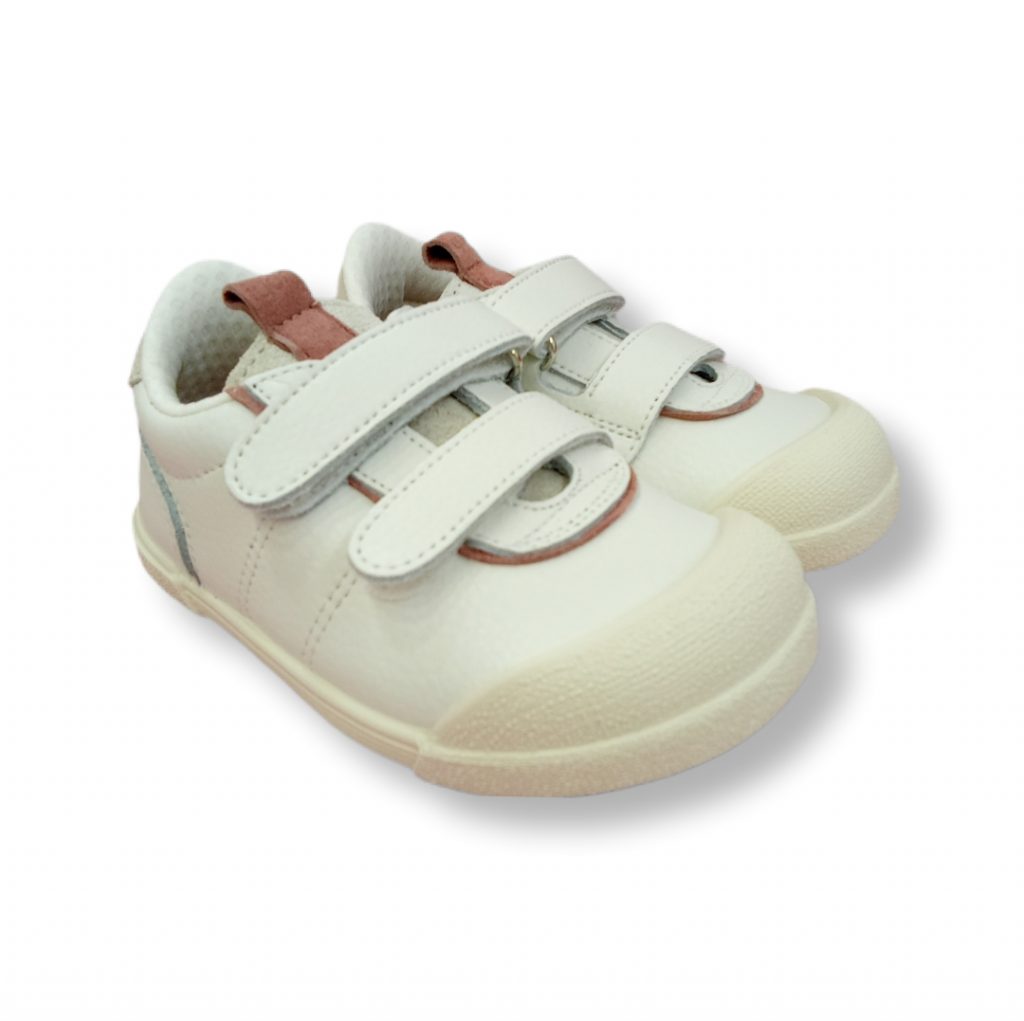 * Deportivos casual de piel en color blanco con líneas en color rosa y puntera reforzada