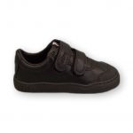 Zapatillas de color negro, modelo Free de Mustang. Su práctico cierre doble adhesivo permite un ajuste rápido y sencillo. Los refuerzos en puntera y talón garantizan mayor resistencia frente al uso intensivo. Diseñado y desarrollado especialmente en colaboración con el Dr. Juanjo López, traumatólogo deportivo e infantil, para respetar el desarrollo natural del pie. Gracias a su puntera ancha permite el libre movimiento de los dedos dentro del zapato. Las plantillas extraíbles facilitan comprobar si la talla del calzado es la correcta. Además, su fácil apertura facilita que los peques puedan descalzarse y calzarse de forma autónoma. Con certificado VEGANO sellado por INESCOP, el cual garantiza que la naturaleza química principal del material no se corresponde con fibras de origen animal.
