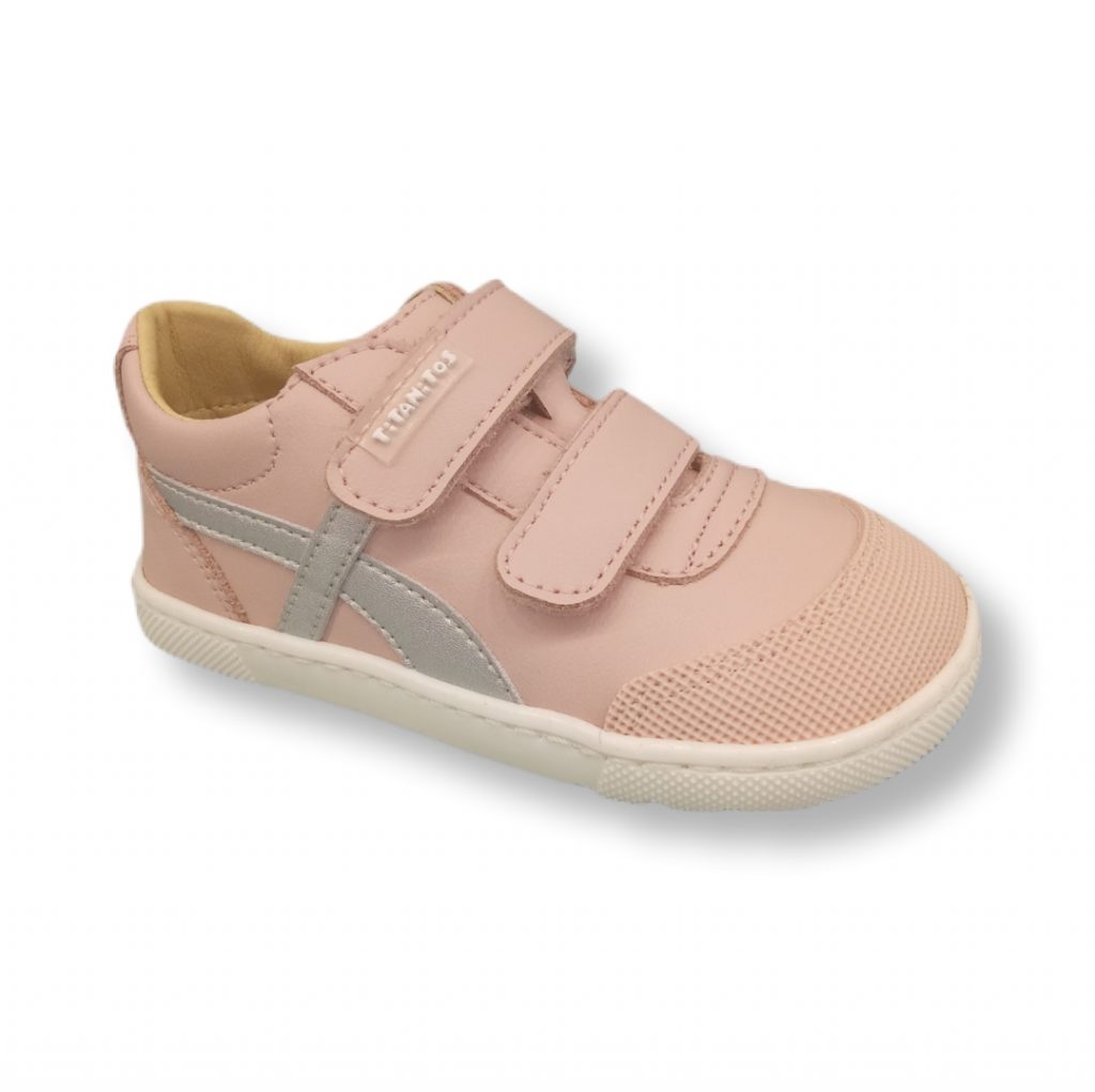 Nueva deportiva respetuosa modelo Diego Baby, en color rosa con detalles en un plateado muy sutil.