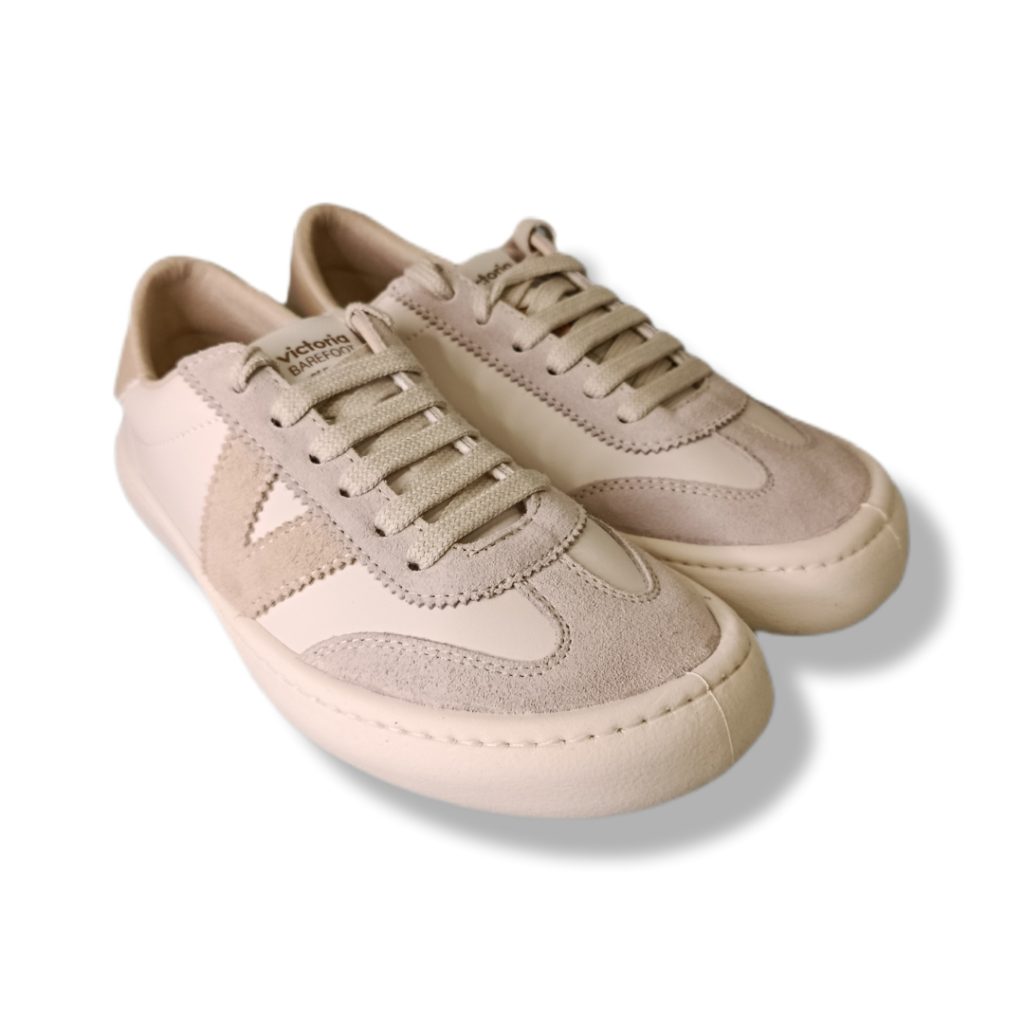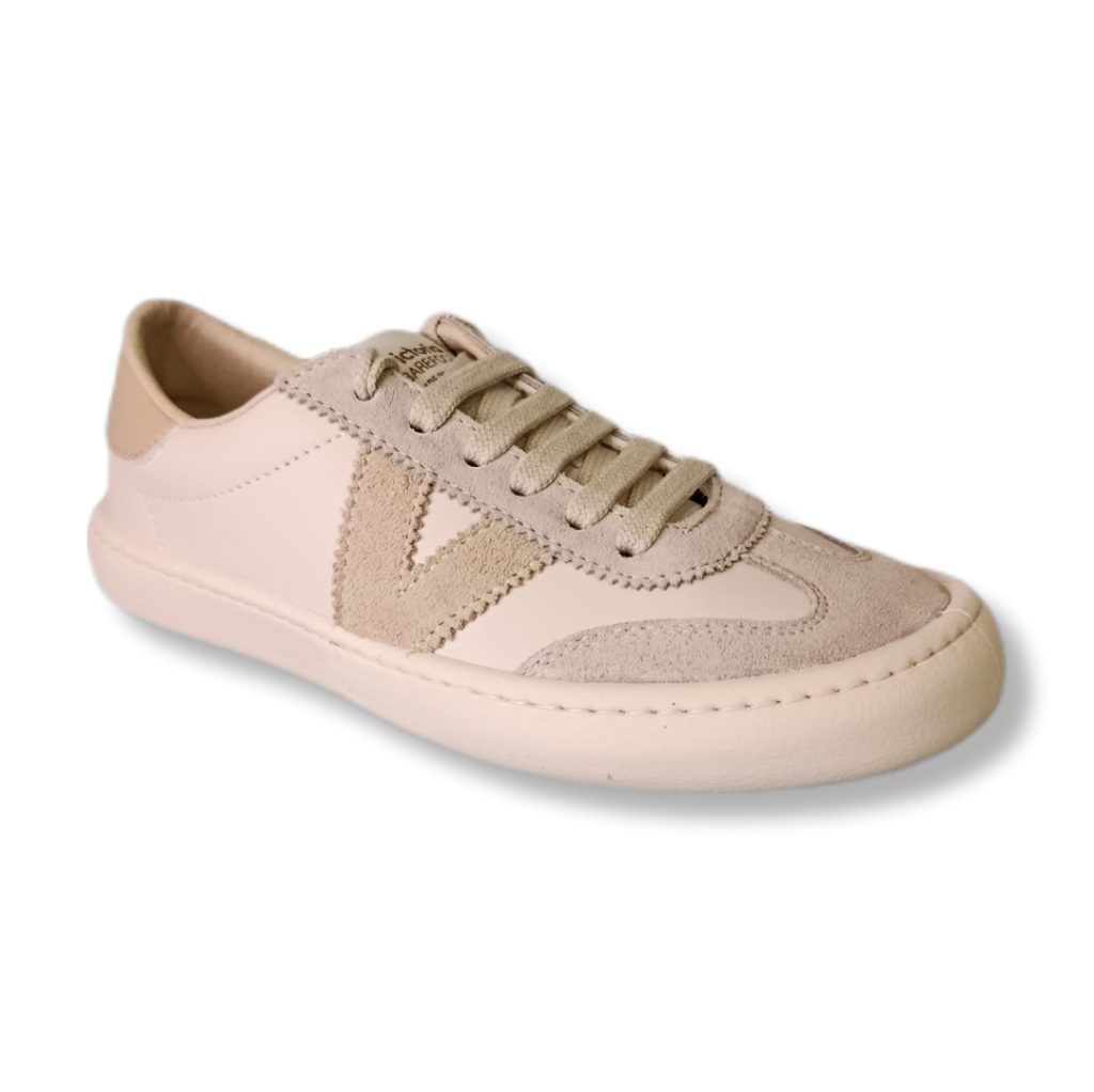 Está fabricada en España, combinando material sintético y serraje, lo que aporta un equilibrio entre resistencia, suavidad y transpirabilidad. El diseño en color hielo con detalles contrastados mantiene la esencia clásica de Victoria, facilitando su combinación con cualquier outfit durante todo el año.